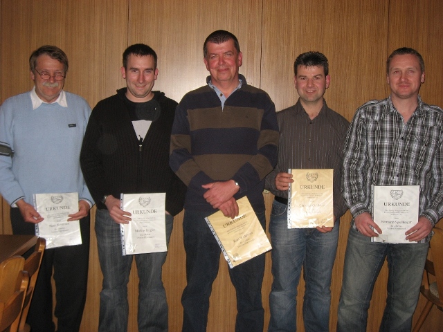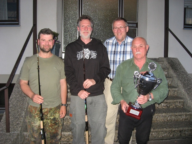 Anfischen: Der Drittplatzierte Christian Goldstein, zweiter Herbert Arenz, Vorstand Rudolf Heinrich und erster Eugen Lugmair (von links).