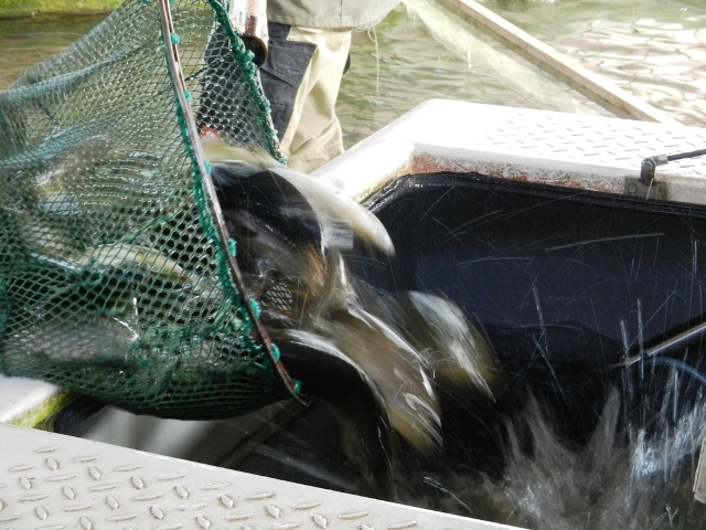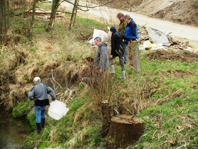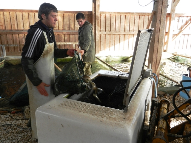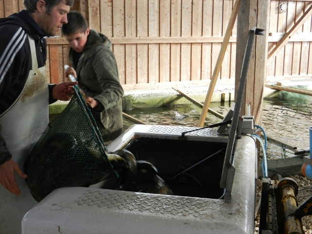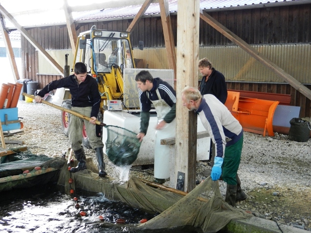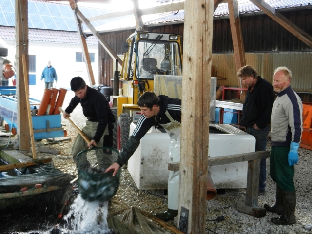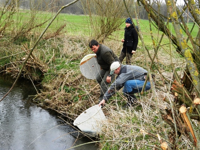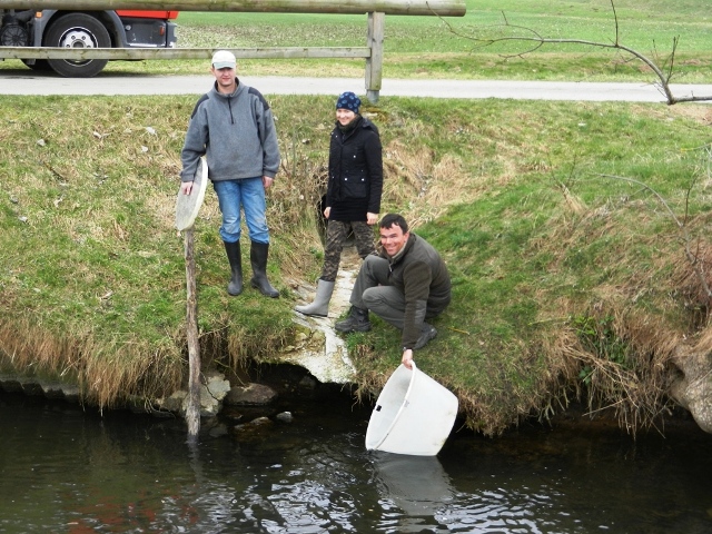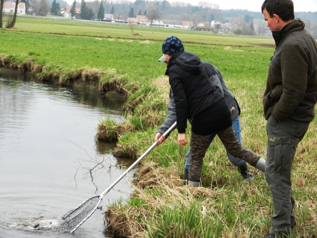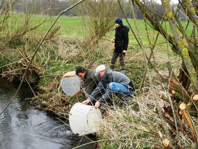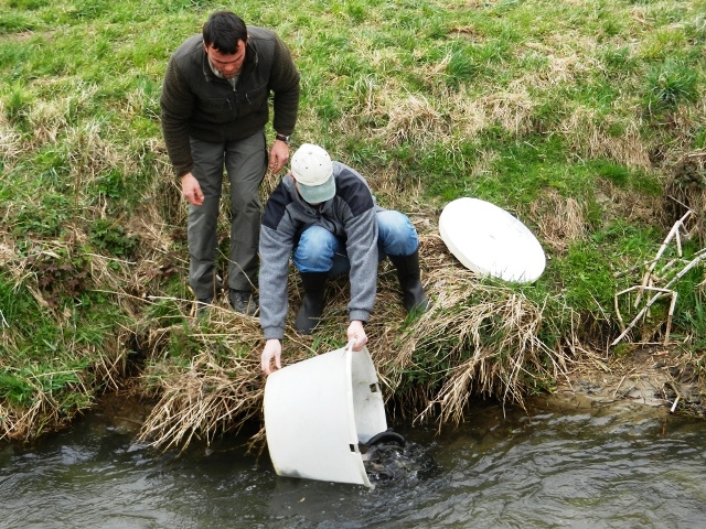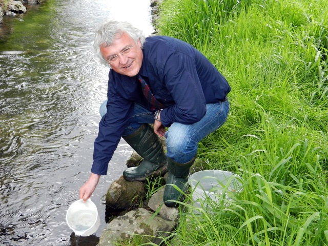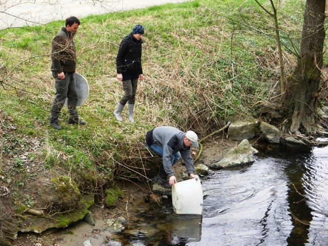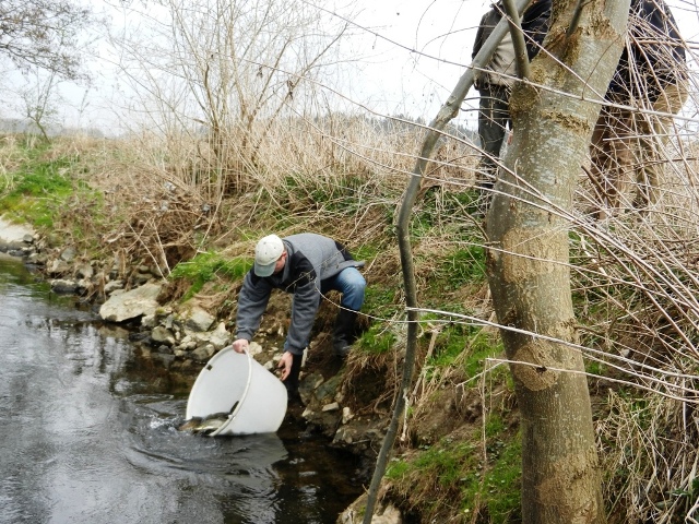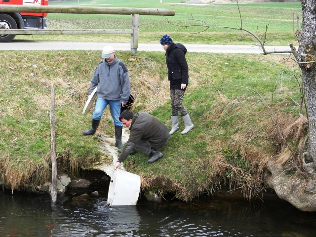 Thomas Wörle beim Besatz der kleinen Äschen.