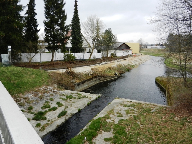Baumaßnahmen zur Hochwasserfreilegung am Blauen Steg Richtung Flugplatz.