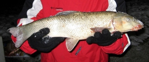 Maximilian Eigner konnte eine stattliche Barbe mit 57 cm und guten drei Pfund fangen.