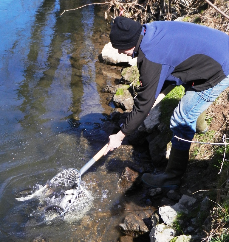 Forellenbesatz an der Paar von der Fischzucht Graf.