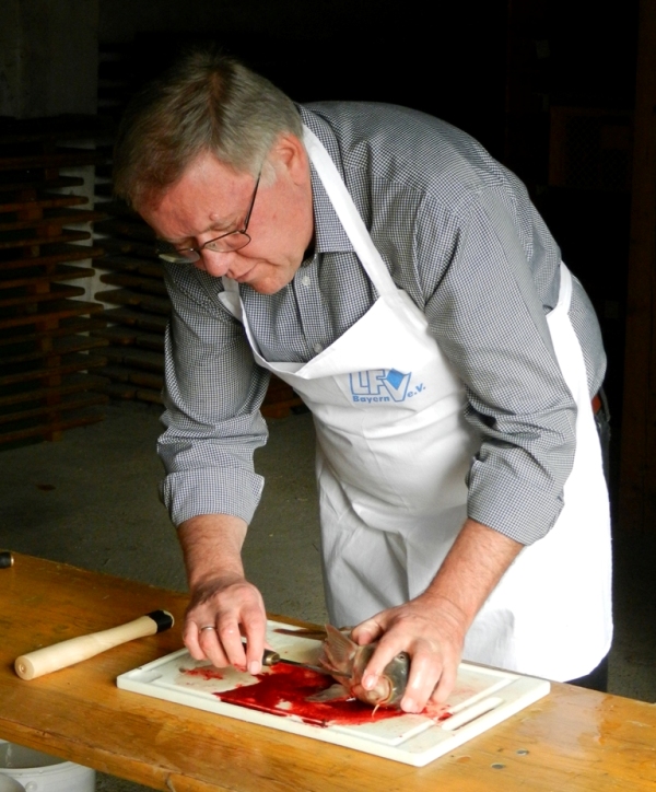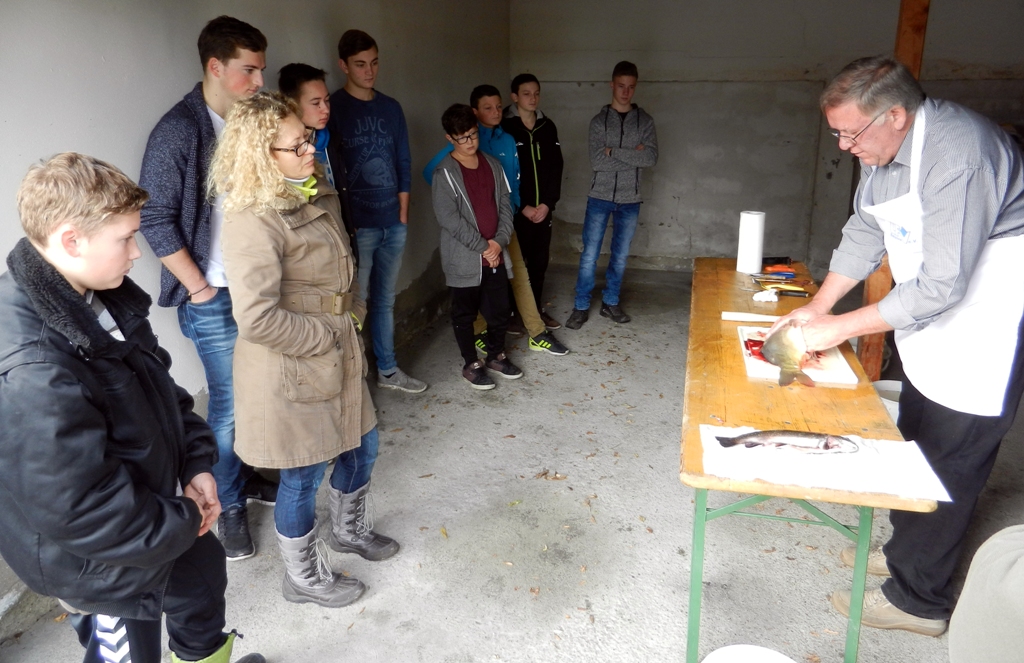 Praxistag Fischerkurs: Vorstand Rudolf Heinrich zeigt, wie man Fische tötet, schlachtet und filetiert.