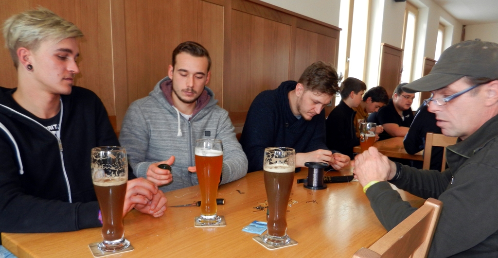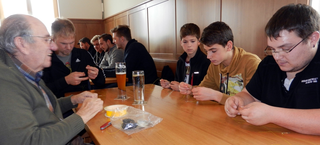 Praxistag Fischerkurs: Konrad Limmer (links) beim Knotenbinden.