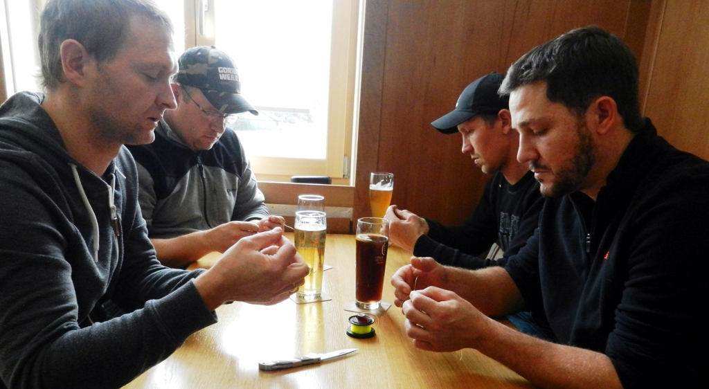 Praxistag Fischerkurs: Uwe Vulturius (rechts) beim Knotenbinden.